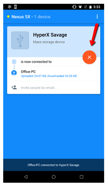 将USB设备连接到你的安卓设备,并确保在FlexiHub中看到它: