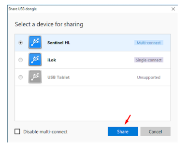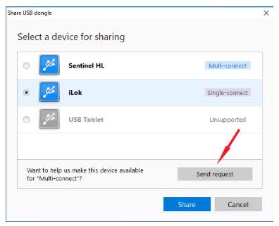注:如果您使用的USB安全加密狗无法支持“多连接”功能,您可以向我们的支持团队发送请求,我们将考虑为您的USB加密狗添加“多连接”支持: